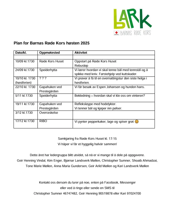 BARK har møtedager onsdager i oddetall uker fra kl. 17.30 til 19.30